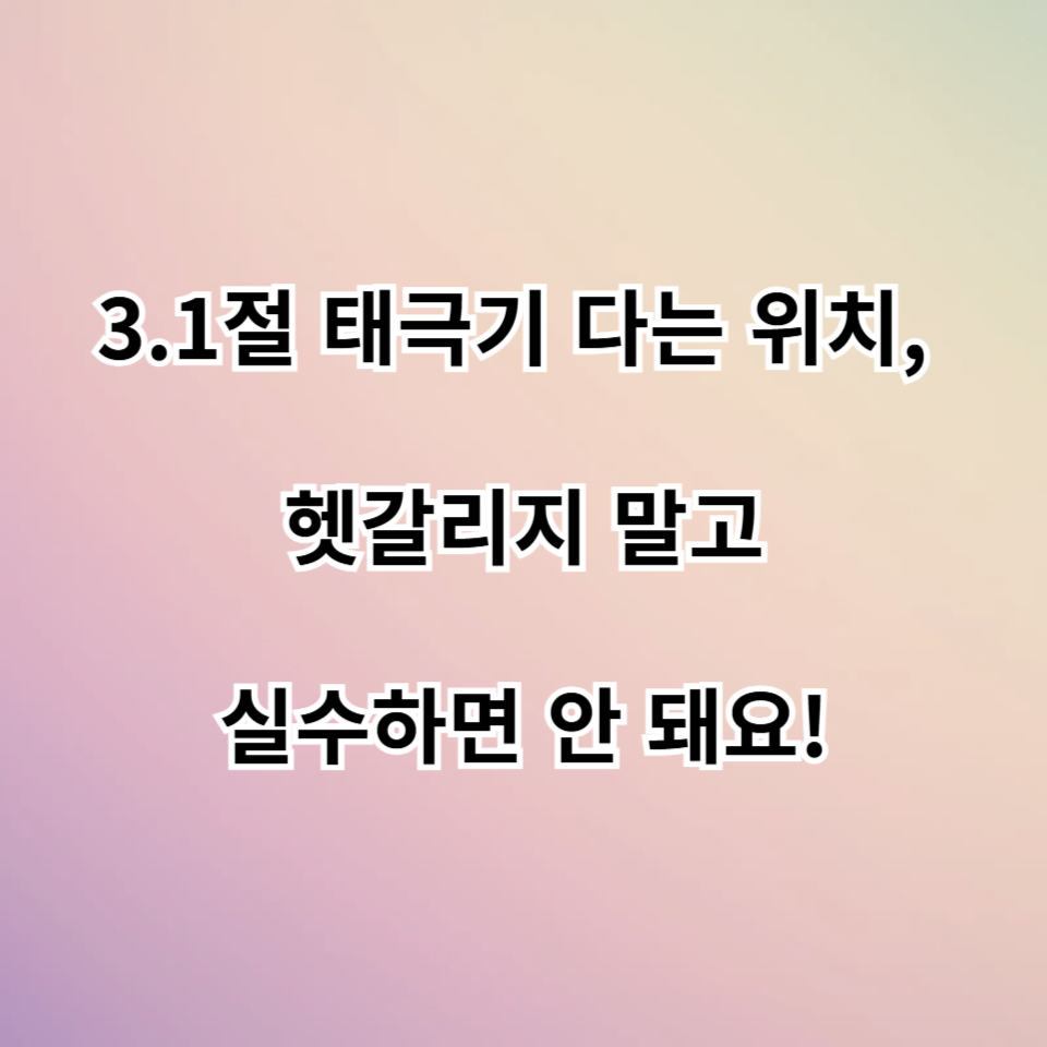 3.1절 태극기 게양은 단순한 행위가 아니라 우리나라의 독립과 자유를 기리는 중요한 의식입니다. 태극기를 다는 위치와 방법을 정확히 숙지하고 실수 없이 게양하는 것이 중요합니다. 특히, 훼손되지 않은 깨끗한 태극기를 사용하고, 태극기의 방향과 높이를 올바르게 맞추는 것이 필수적입니다. 이번 3.1절에는 올바른 방법으로 태극기를 게양하여 대한민국의 자랑스러운 역사를 함께 기념해 보세요.